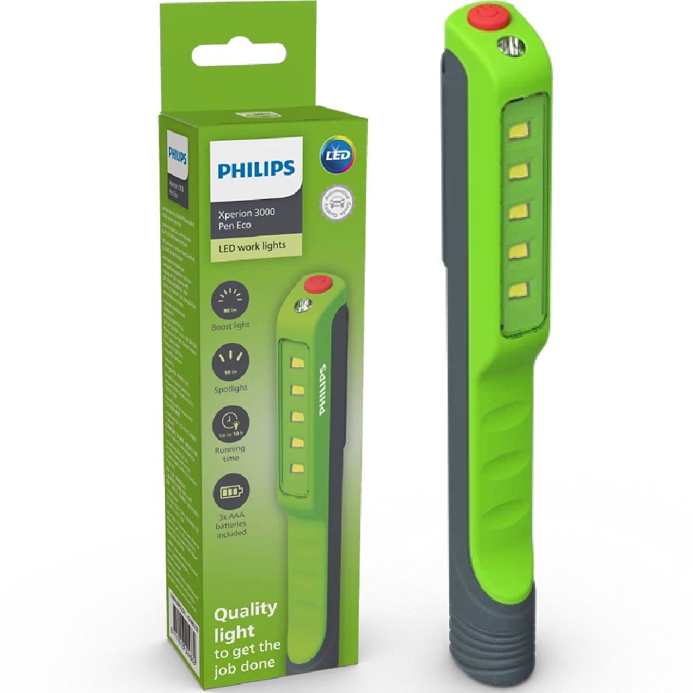 Niezależnie od tego, czy majsterkujesz w garażu, też czy próbujesz naprawić jakieś urządzenie, zawsze warto mieć w kieszeni małą lampkę. Philips Xperion 3000 Pen eco oświetla to, nad czym pracujesz, dzięki czemu możesz zobaczyć szczegóły potrzebne do szybkiego wykonania pracy.