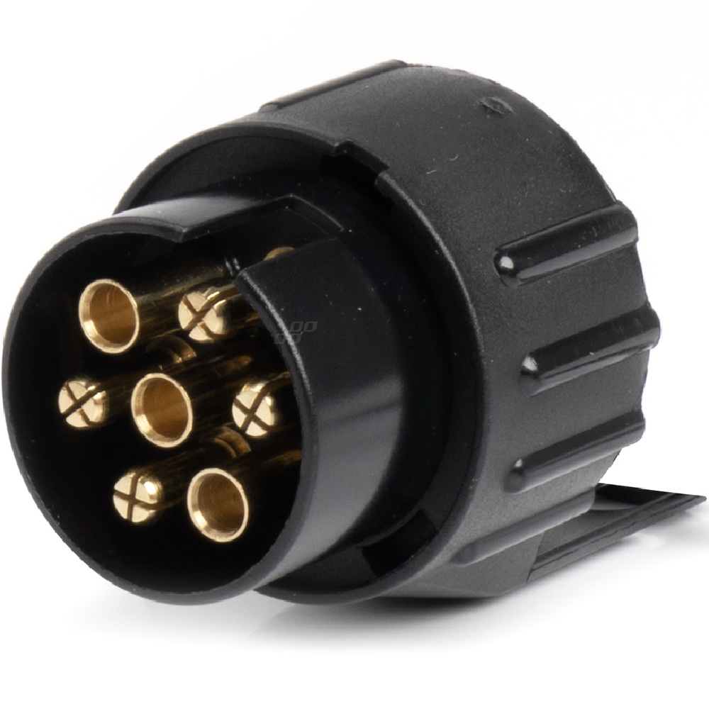 Wtyczka 13 pinowa umożliwia standardowe połączenie elektryczne między samochodem osobowym lub busem z przyczepami transportowymi. Wtyczka jest na wyposażeniu elektrycznym przyczepy i łączy się ją z gniazdem przy haku holowniczym pojazdu.
