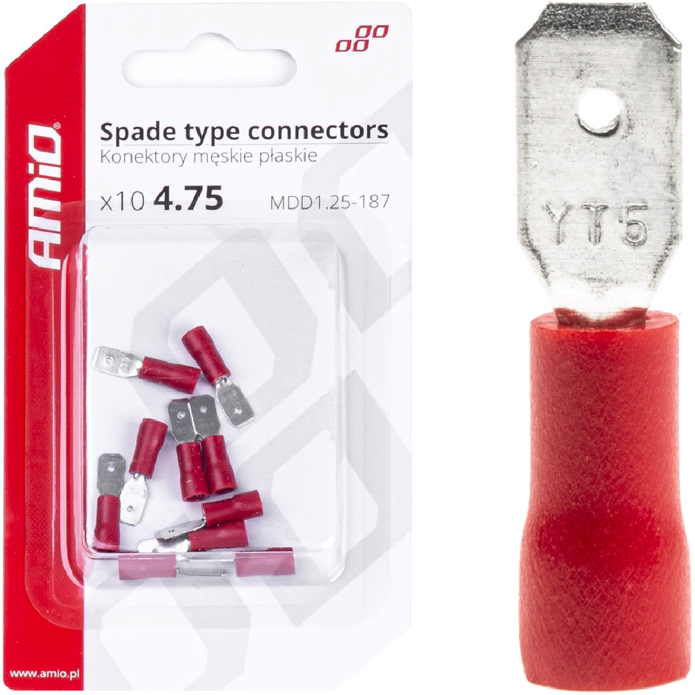 AMIO Konektory męskie płaskie 4,75mm 10A 10 szt.
