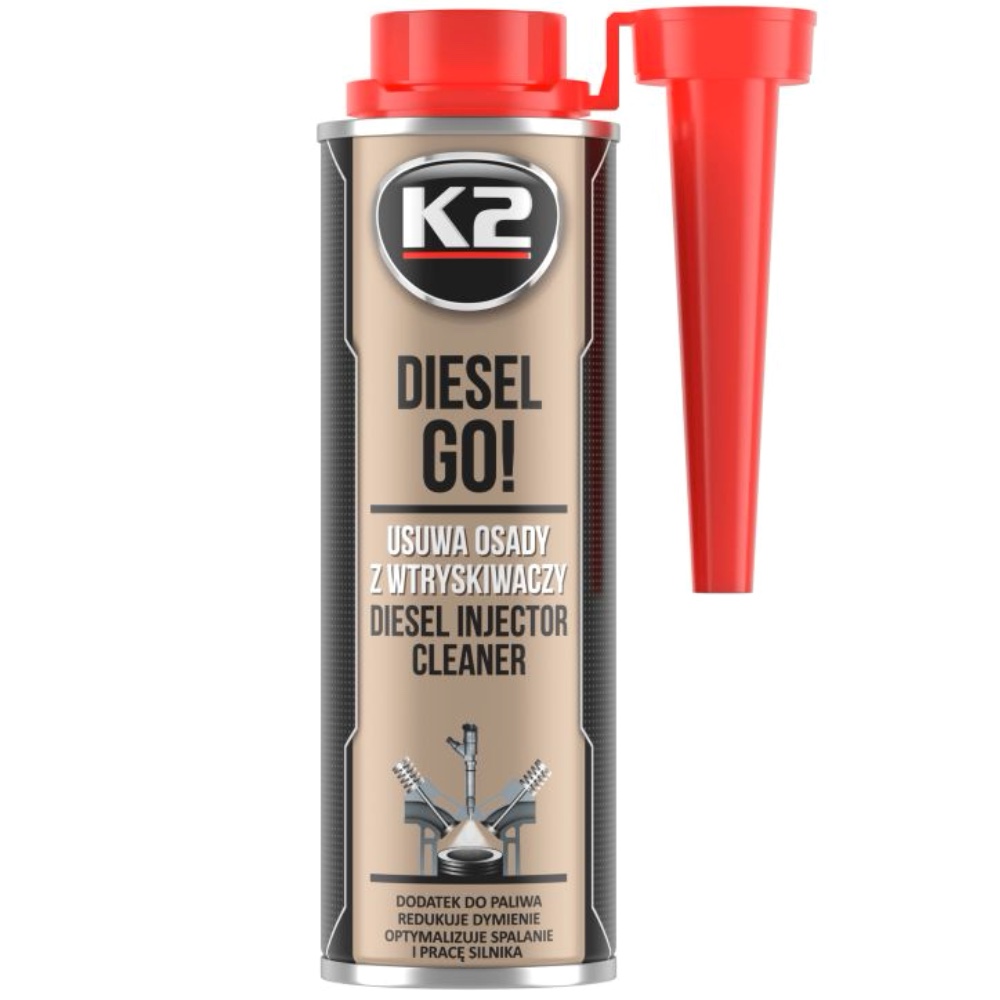 K2 Diesel GO! 250 ml Czyści wtryskiwacze w silniku wysokoprężnym, redukuje dymienie, optymalizuje spalanie i pracę silnika
