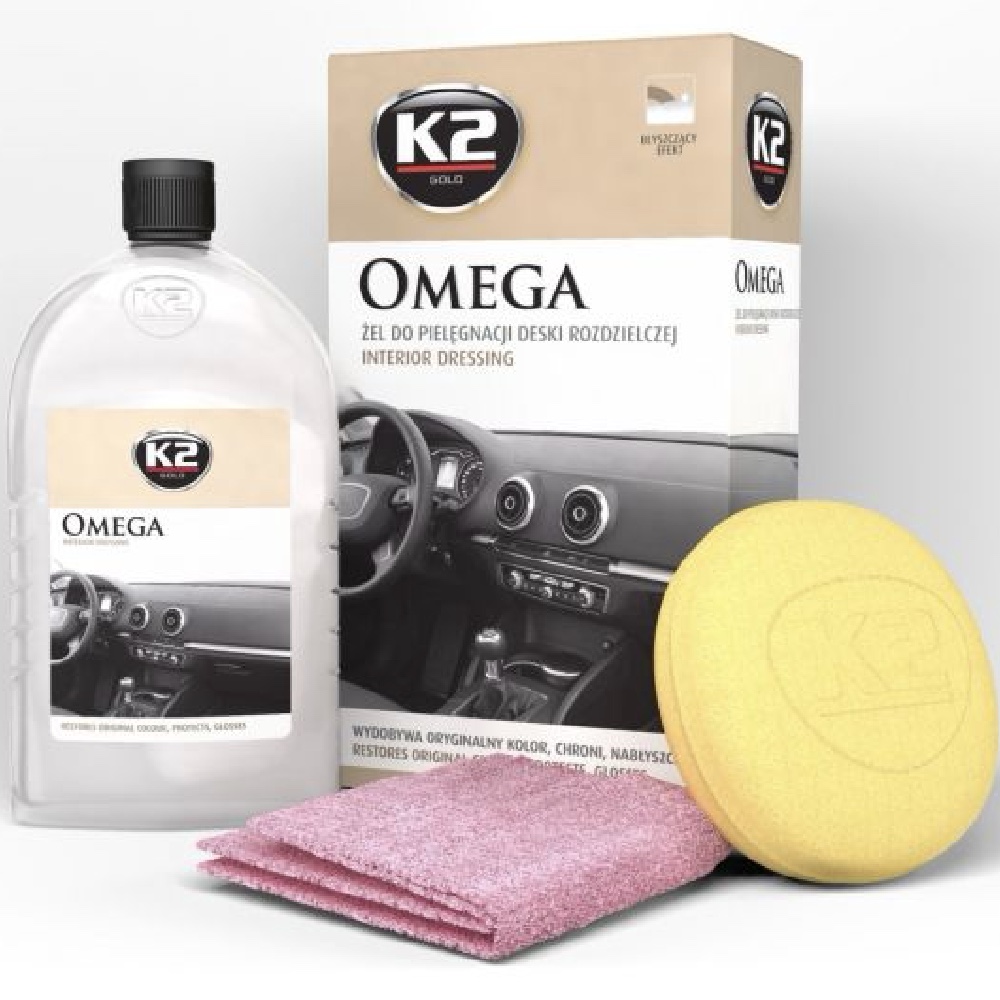 Żel do pielęgnacji kokpitu K2 OMEGA nadaje połysk, podkreśla strukturę i wydobywa oryginalny kolor tworzywa. Innowacyjna formuła produktu zapewnia długotrwały efekt, skuteczną ochronę przed promieniowaniem UV dzięki właściwościom antystatycznym na długo chroni przed ponownym osadzaniem się kurzu. Pozostawia przyjemny zapach i lśniącą powierzchnię, która sprawia, że czyszczone elementy wyglądają jak nowe.