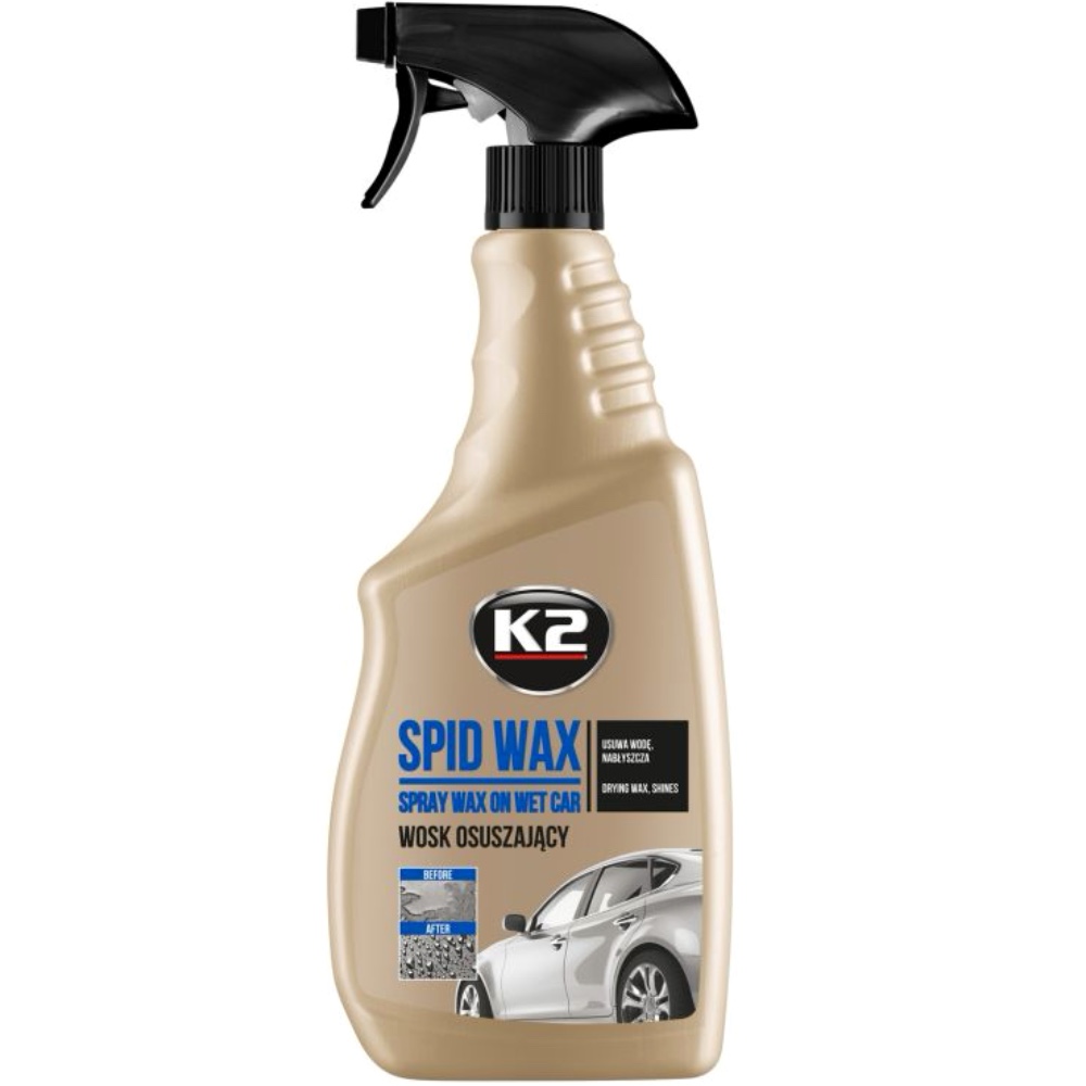 K2 Spid Wax to wosk, który nadaje się do stosowania na mokro i na sucho. Wosk wyprodukowany na bazie syntetycznej. Dostosowany do aplikacji na mokrą karoserię, bezpośrednio po umyciu samochodu. Właściwie zaaplikowany tworzy powłokę hydrofobową, która wypiera wodę. Dzięki temu samochód wysycha szybciej.