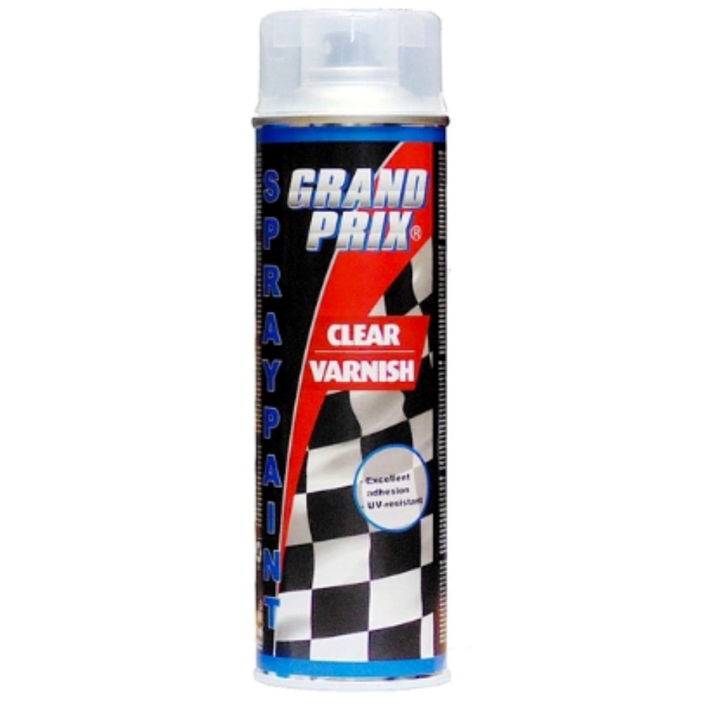 Grand Prix Clear Varnish – szybkoschnący, bezbarwny lakier akrylowy z trwałym połyskiem w sprayu o pojemności 500 ml