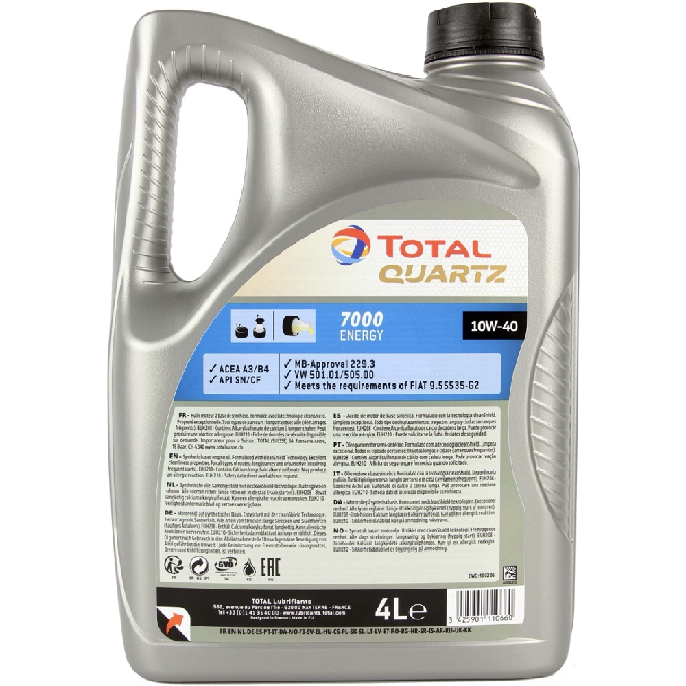 TOTAL QUARTZ 7000 ENERGY jest nowoczesnym, półsynetyczny olejem silnikowym, który jest całkowicie kompatybilny z najnowszymi rozwiązaniami technicznymi zastosowanymi w silnikach benzynowych i diesla większości producentów na świecie.