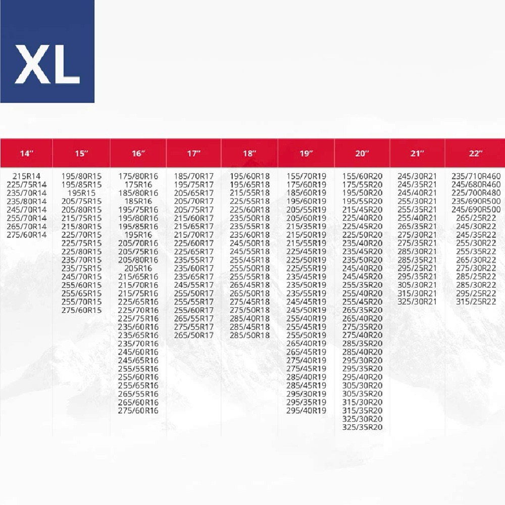 - Kompatybilność: Rozmiar XL pasuje do szerokiej gamy opon, co czyni je uniwersalnym rozwiązaniem dla wielu modeli samochodów.