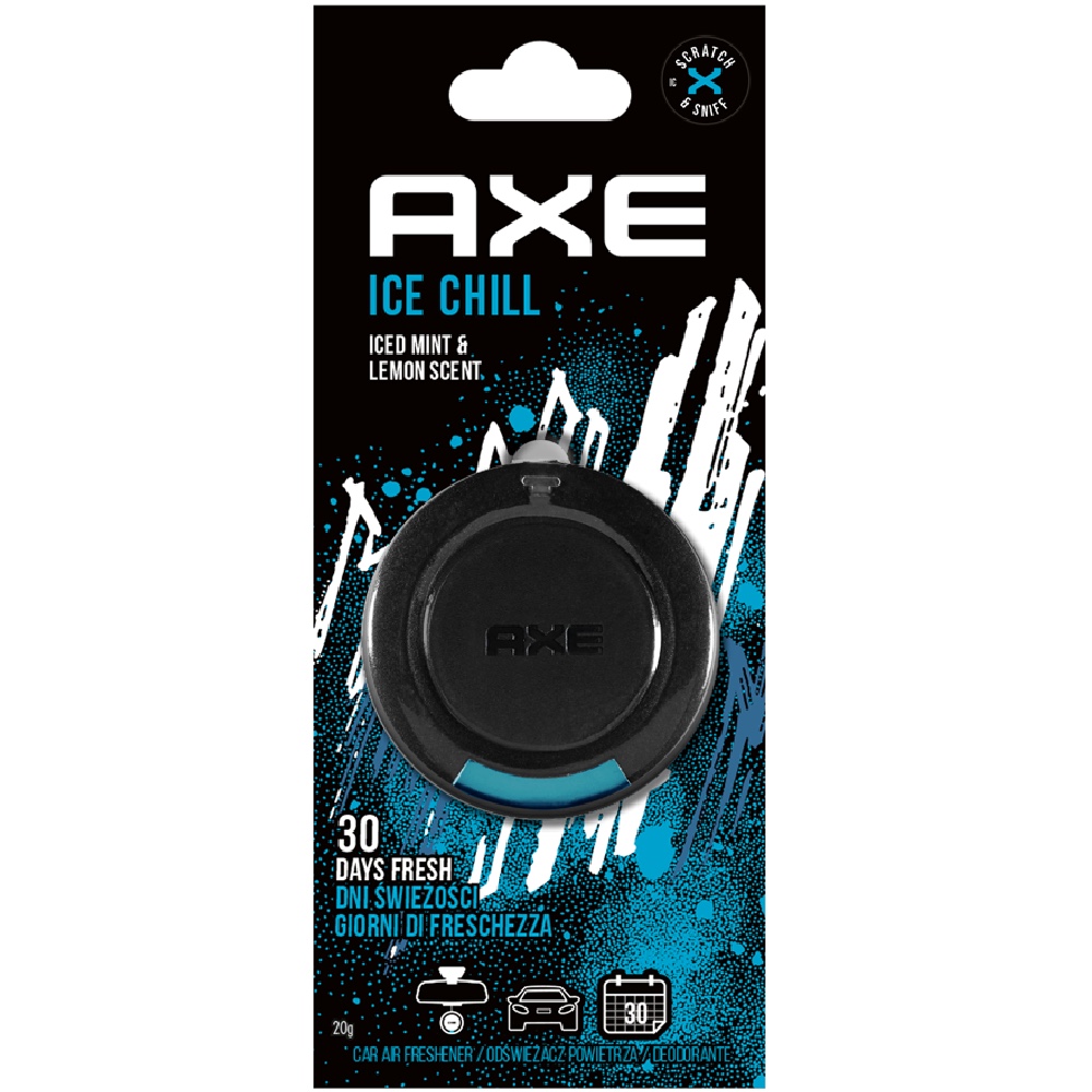 Zawieszki zapachowe do samochodu gwarantujące aż do 30 dni działania. Skuteczna dawka dyskretnego aromatu do Twojego auta. Pozwól aby wnętrze twojego samochodu pachniało świetnie cały dzień. Zapachy AXE pozwalają kontrolować świeżość w twoim samochodzie, niezależnie od tego gdzie jesteś. O zapachu Ice Chill.