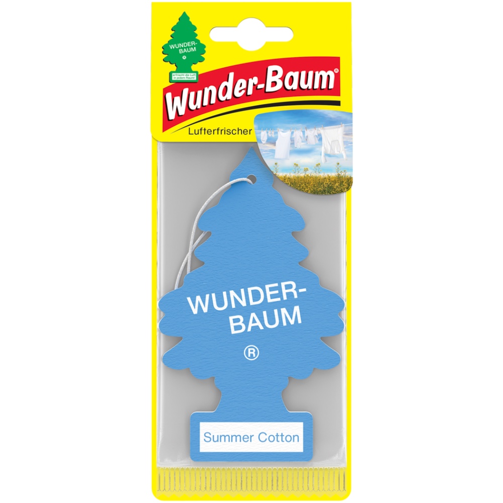 Zawieszka zapachowa w kształcie choinki Wunder-Baum o aromacie wypranej bawełny na letnim wietrze